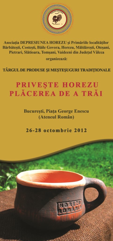Horezu și regiunea sa va dau intalnire la București în cursul ultimului weekend din octombrie, de vineri 26 (de la orele 17) până duminică seara, 28 , in piata ENESCU ( lângă Ateneul Român).