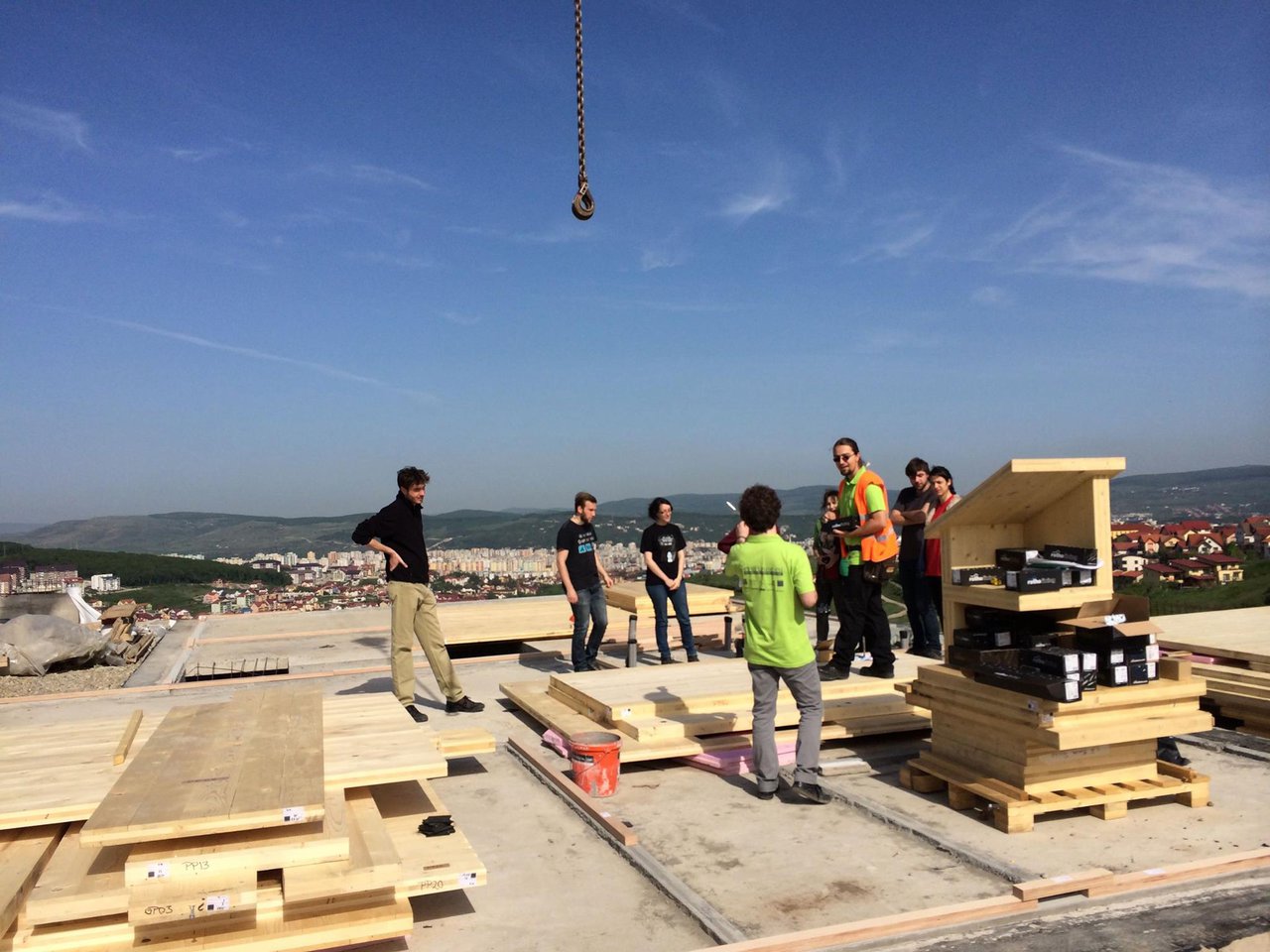 structuri de lemn și de conformare energetică, în perioada 5-12 octombrie, se va asambla la Bragadiru (str. Mărăcineni) prima casă pasivă,precertificată de către Passivhaus Institut - Darmnstadt, Germania, realizată pe structură de Cross Laminated Timber și termoizolație din fibră de lemn din București. Casa a fost inspirată de conceptul EvoHouse din Cluj Napoca realizată de asemenea ca stagiu de practică pentru studenții arhitecți din Cluj Napoca.