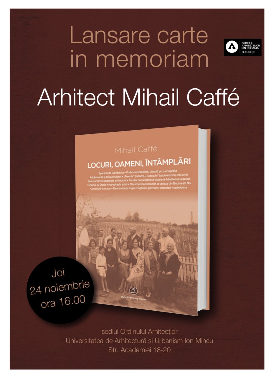 Vă invităm să participați la lansarea cărții LOCURI, OAMENI, ÎNTÂMPLĂRI - In memoriam arhitect Mihail Caffé.