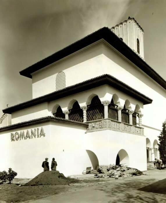 În imagine - parte din Pavilionul Național al României la Expoziția Universală New York 1939-1940 - au fost construite atunci Pavilionul Central, autor arh. G.M.Cantacuzino, “Casă Românească” autor arh. Octav Doicescu. Spațiile au reprezentat lucrări ale unor personalități ale culturii românești precum Nicolae Grigorescu, Ion Andreescu, Theodor Pallady, Gheorghe Petrașcu, Cornel Medrea, Milita Pătrașcu, Oscar Han, Olga Greceanu, precum și alții.