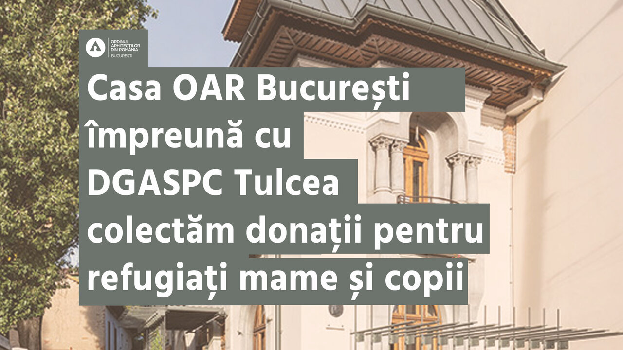 Ordinul Arhitecților din România - Filiala București, împreună cu DGASPC Tulcea colaborează pentru acțiunile umanitare privind refugiații. Cu sprijinul Primăriei Sector 1, MNAC, UAUIM, Alumil, Wienerberger, Holcim, Hai cu Autocarul, am realizat un program umanitar de sprijin în vămile din Siret și Isaccea.