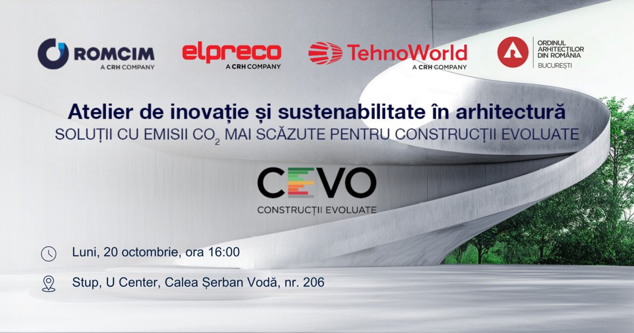 Sunteți invitați să vă înscrieți la Atelierul de inovație și sustenabilitate în arhitectură CEVO | Romcim. Acesta este organizat de ROMCIM a CRH Company, în parteneriat cu OAR București.