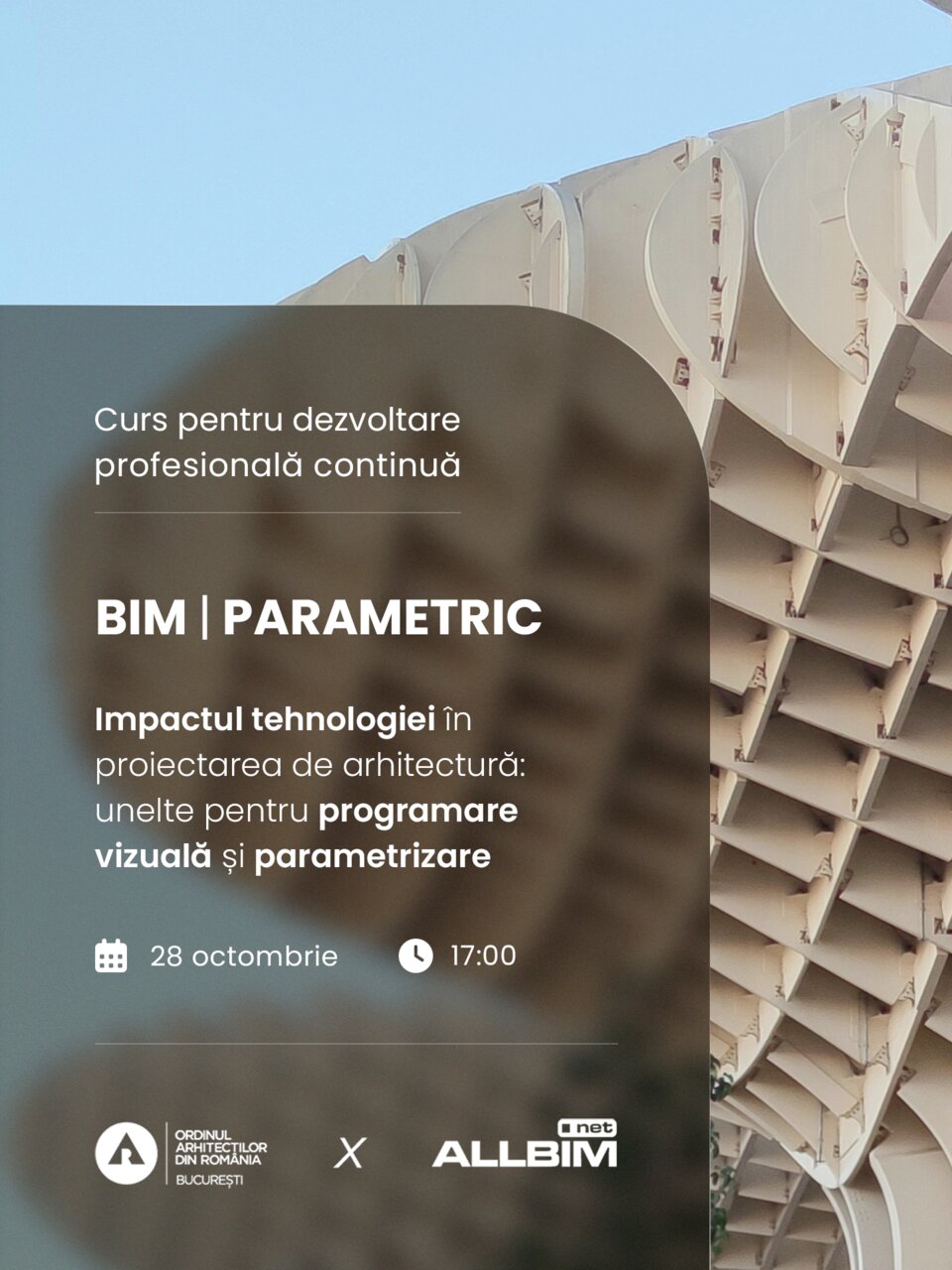 Vă invităm să vă înscrieți la cursul organizat de ALLBIM NET, în parteneriat cu OAR București - Impactul tehnologiei în proiectarea de arhitectură: unelte pentru programare vizuală și parametrizare.