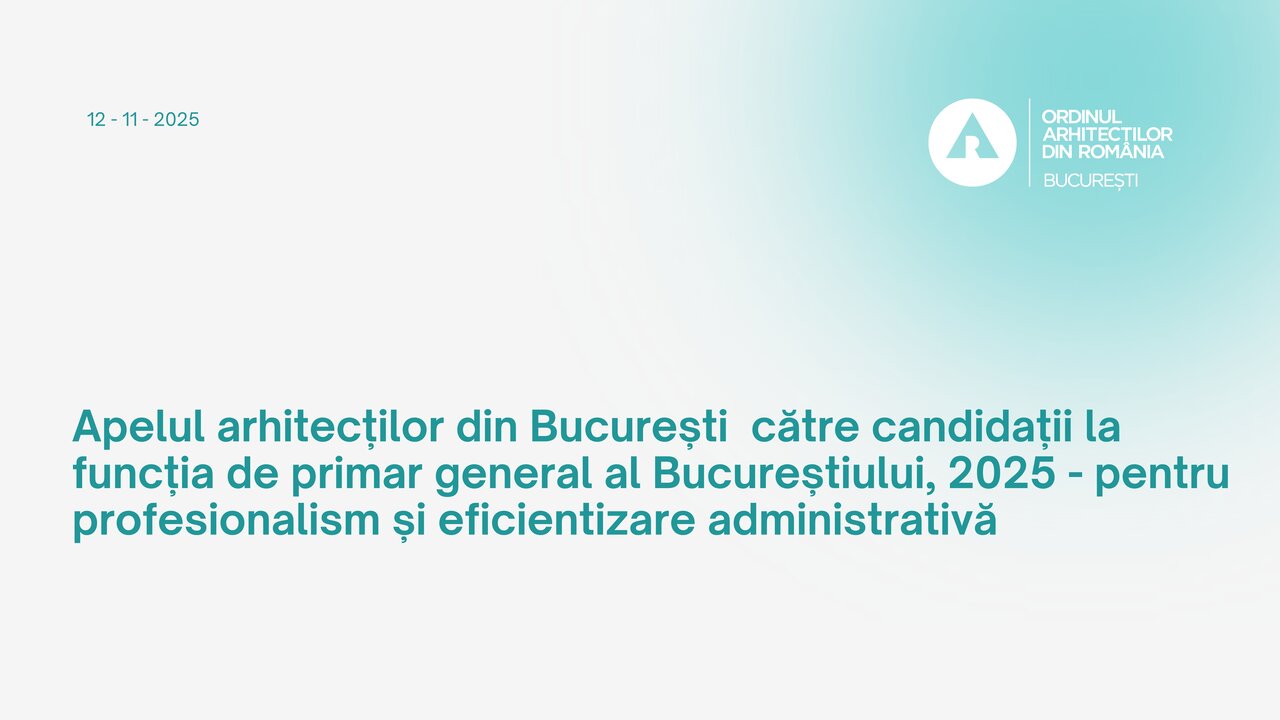 Filiala Teritorială București a Ordinul Arhitecților din România (OAR București), în care sunt înscriși peste 40% dintre arhitecții din țară, face următorul apel către candidații la funcția de primar general al Bucureștiului, 2025: