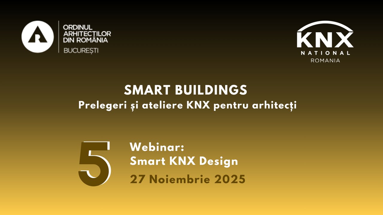 Au început înscrierile la webinarul Smart Knx Design dedicat aparatelor terminale KNX, unde designul se întâlnește cu funcționalitatea. Acesta se desfășoară online în data de 27 noiembrie 2025, în intervalul 17:00 – 18:30. Evenimentul este organizat de Asociația KNX România în parteneriat cu OAR București și este gândit să prezinte în detaliu tastere, termostate și displayuri, astfel încât să poată fi văzute diferențele dintre materiale, finisaje, forme și moduri de integrare în conceptul arhitectural.