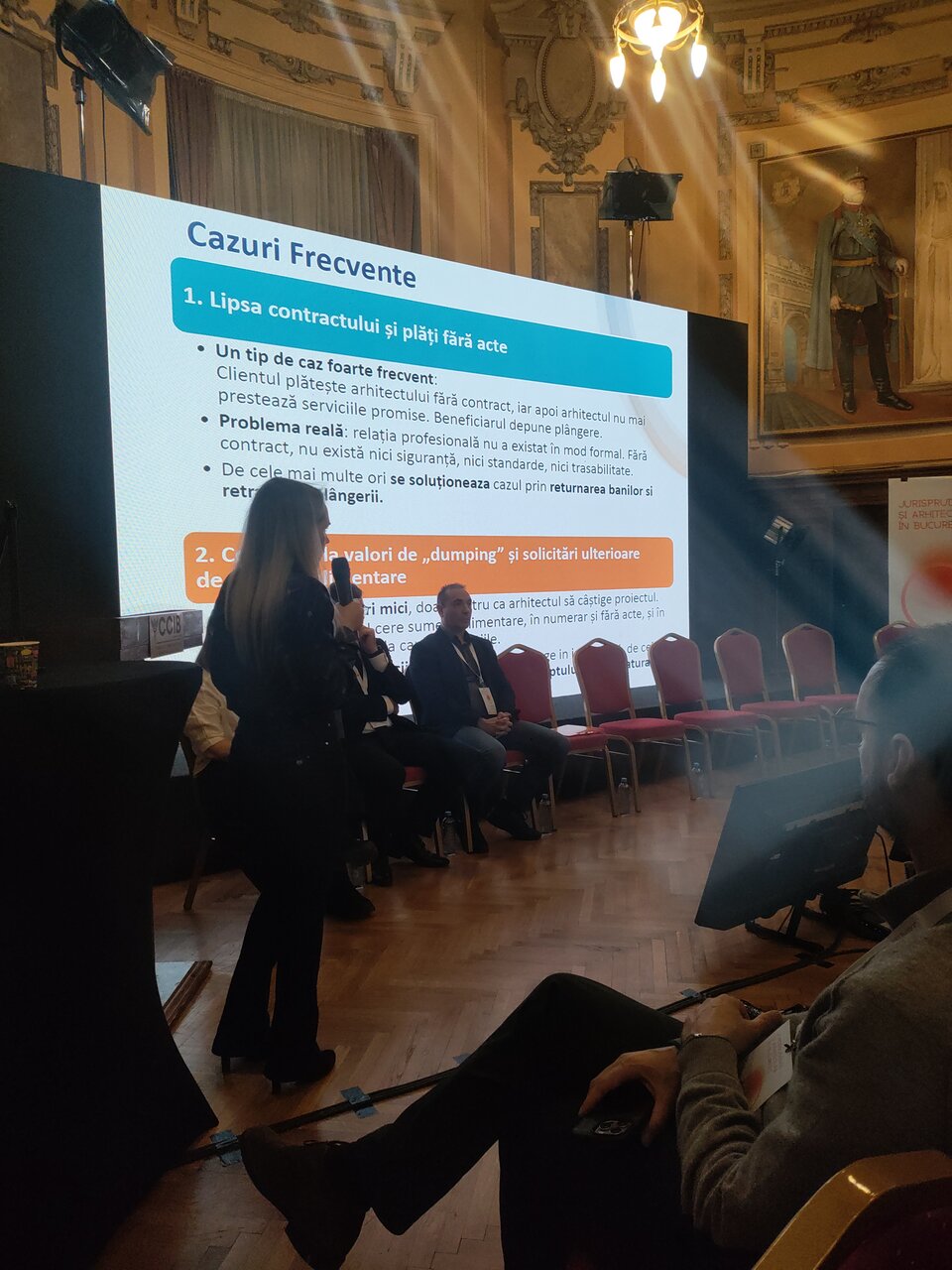 Evenimentul Jurisprudență și arhitectură în București organizat de Filiala București a OAR în cadrul Anualei de Arhitectură București 2025 si care s-a desfășurat luni, 24 noiembrie 2025, la Camera de Comerț și Industrie a Municipiului București, a adus în prim plan dimensiunea legală a ceea ce înseamnă practicarea profesiei de arhitect. Conferința este primul eveniment din România organizat pe acest subiect și a avut în vedere constituirea unei jurisprudențe de arhitectură pe baza cazurilor comune întâlnite la comisia de disciplina din București. Va fi realizat un raport scris, ca un mini-ghid de prevenție pentru situații din practica profesională.