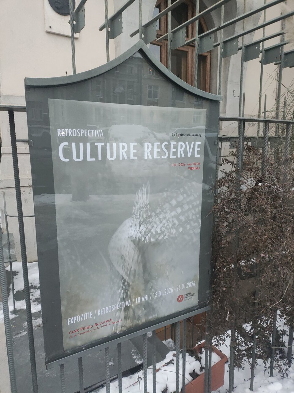Vernisajul expoziției aniversare „Retrospectiva Culture Reserve – 10 ani” semnat de echipa Culture Reserve a fost o privire critică, o plăcere de a continua și un manifest de a continua. Expoziția cuplează fragmente din proiectele iconice vorbind despre cultura de arhitectură construită alături de peste 2500 de oameni care au fost implicați de-a lungul anilor în peste 80 de proiecte semnate de Culture Reserve.