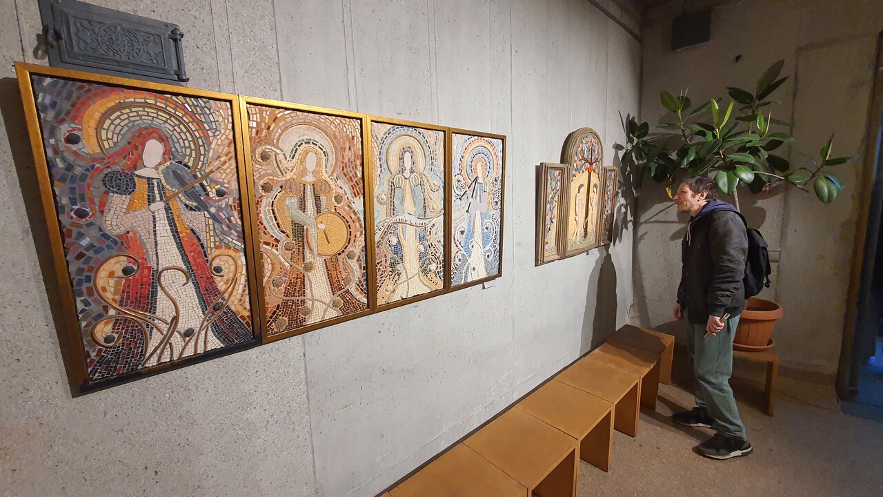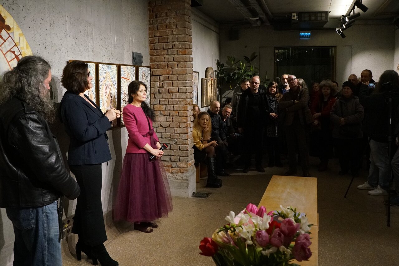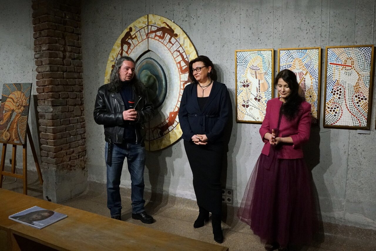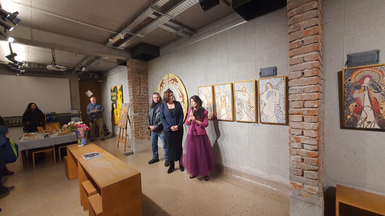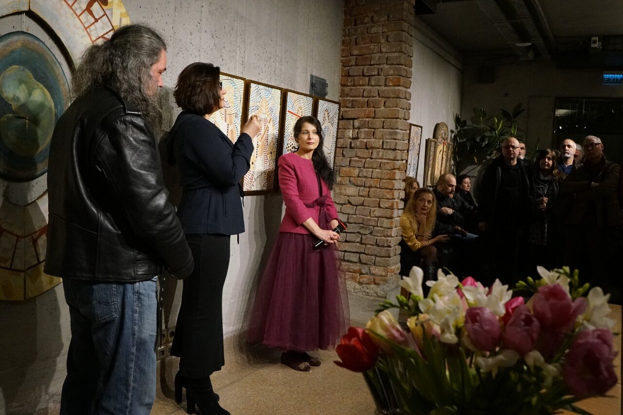 „Femeia, portalul prin care viitorul ia ființă, simboliza renașterea veșnică a naturii, lupta continuă a vieții împotriva morții și a întunericului!” Acesta este mottoul expoziției pe care ne-o propun artiștii Raluca Ioana Enăchescu și Matei Enric, la începutul unei luni care așază femeia în centrul atenției. Feminitatea este una dintre cele mai “încercate” teme ale artelor, indiferent de timpuri sau de tehnici, o temă complexă și profundă prin diversitatea abordărilor și a simbolisticii pe care fiecare artist le explorează. Pentru cei doi artiști, din această expoziție, reprezentarea feminității este nu doar un act sau un demers plastic, ci mai ales unul de recompunere prin limbaj plastic a atributelor feminine, de-a lungul istoriei umanității, atât în registrul creștin, cât și în cel mitologic, prin corola de ipostazieri ale femeii… de la începuturile existenței. Pe acest palier al facerii lumii, prin mitul lui Adam și Eva, în relație cu pomul cunoașterii binelui și răului, realizat în mozaic de Raluca Enăchescu, expoziția deschide calea identificării femeii în ipostaza de co-creator al lumii și prototip al iubirii care leagă și totodată separă lumea celestă de cea terestră, prin păcatul originar. Aceasta este una dintre lucrările care o reprezintă, poate, cel mai mult pe Raluca Enăchescu, pentru că reunește, prin acest triptic – o fragmentare a imaginii în 3 panouri, atât tehnica mozaicului cu ceramică sau sticlă colorată, cât și pictură și bricolaj, o alternare a stilurilor astfel încât conceptul să își găsescă cea mai adecvată formă de reprezentare. La multe lucrări, inclusiv la cele prezentate în această expoziție, intervine cu intarsii de cupru, îndeosebi pentru a contura aureolele personajelor feminine pe care le așază sau le pune sub semnul echilibrului, al perfecțiunii sugerate de simbolul cercului. De altfel, aproape toate personajele sale sunt într-o relație aproape organică cu natura – cea de-a două direcție pe care o valorifică artiștii, în această expoziție: renașterea și regenerarea vieții, un atribut comun al lumii umane și vegetale și în această direcție de interpretare se plasează cele 4 panouri care înfățișează anotimpurile, personificate ca tinere femei purtătoare de simboluri vizuale și sugestii acustice și olfactive ale fiecărei împărțiri a timpului. Femeile-anotimpuri sunt imaginea pe care cultura a creat-o și a perpetuat-o prin literatură, arte vizuale și muzică, iar, din fiecare, Raluca Enăchescu a extras elemente de asociere și de identificare: instrumentul muzical, ca o reverberație a Anotimpurilor lui Vivaldi, elemente din registrul vegetal și culorile specifice artelor plastice, postura și tipul de reprezentare asociat fiecărei delimitări temporale și “de personalitate” a anotimpurilor. Același personaj feminin, ca asociere cu însăși natura, este regăsit în reprezentarea elementelor primordiale pe care artista le valorifică nu doar prin sugestii ale fiecărui element, ci și prin inserarea în compoziții a unor fragmente vegetale sau minerale care circumscriu fiecare registru: scoici, pentru Apă, flori pentru Aer, conuri de pin pentru pământ, cărbune pentru Foc...