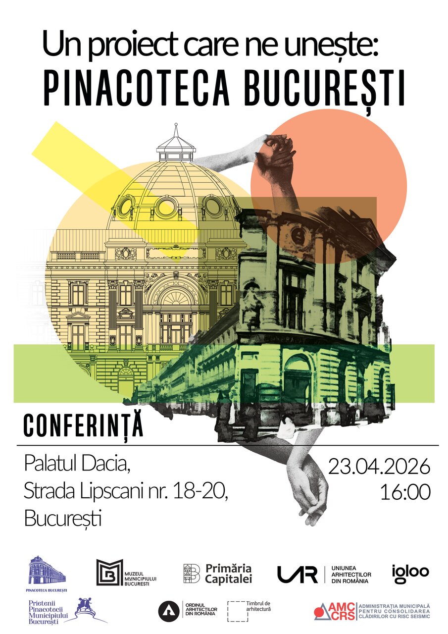 Evenimentul reunește și alte instituții partenere — printre care Ordinul Arhitecților din România și Uniunea Arhitecților din România — și va prezenta calendarul lucrărilor, viziunea instituțională a viitoarei Pinacoteci, precum și anunțarea intenției de lansare a unui concurs public de idei pentru amenajarea sa ca instituție culturală contemporană.