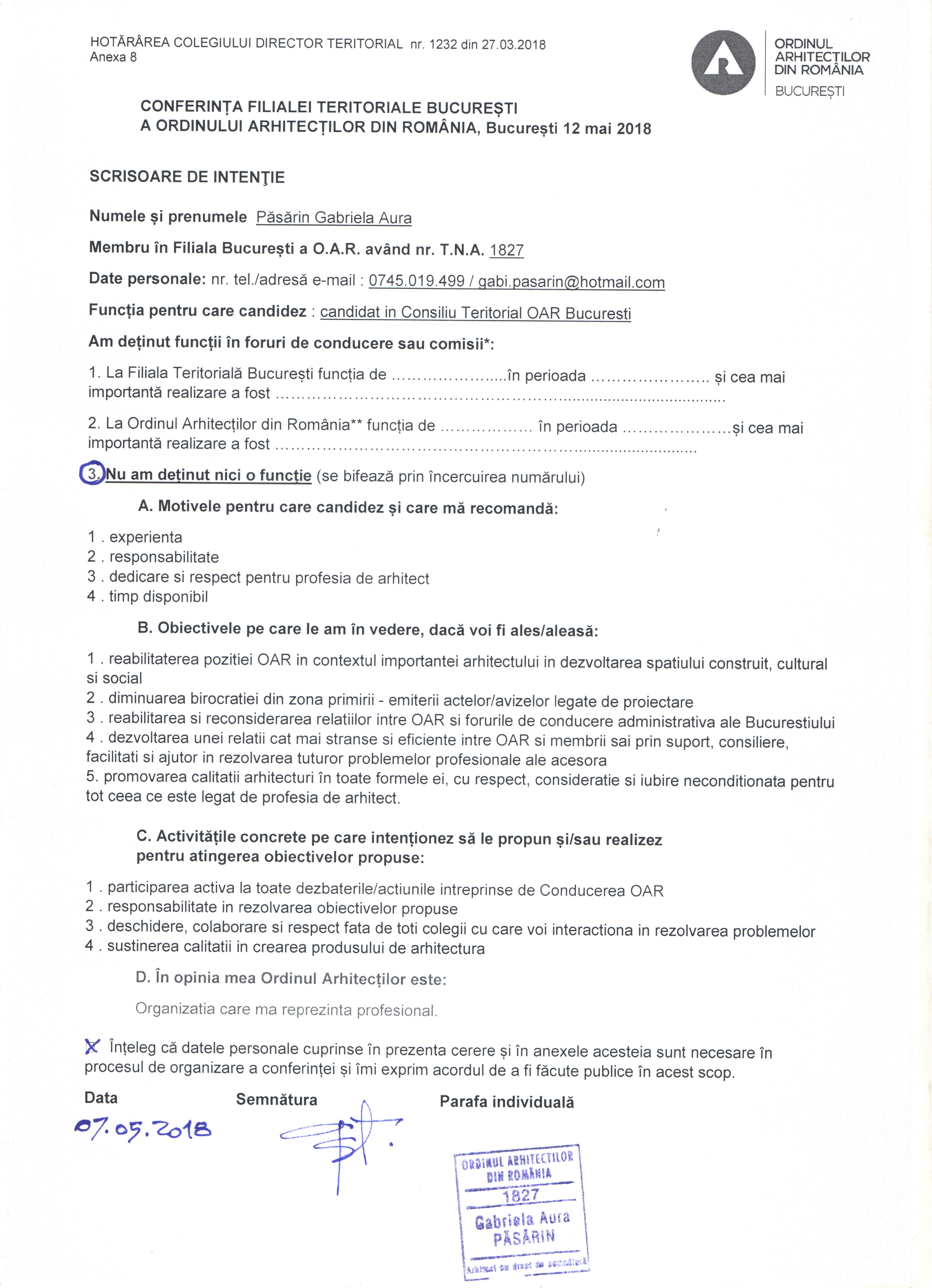 Rezultate vot Conferința Teritorială O.A.R. București - 12 mai 2018